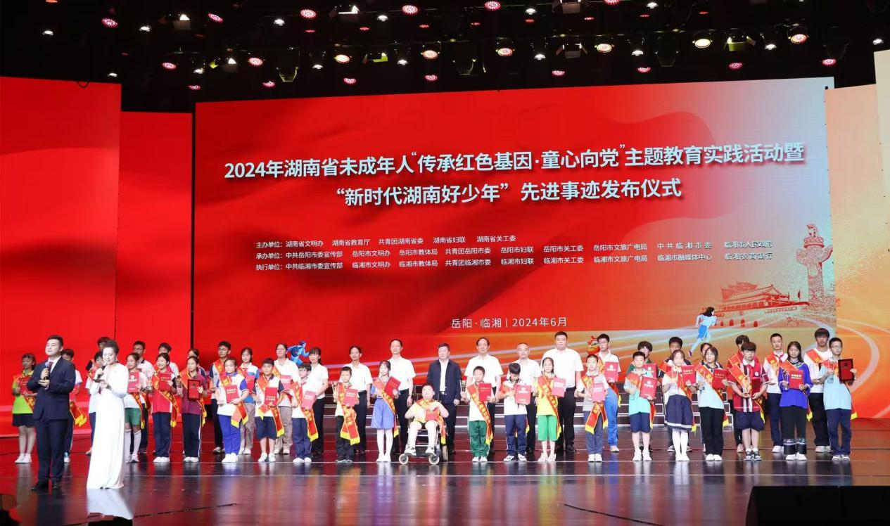 湖南省未成年人“传承红色基因·童心向党”主题教育实践活动暨“新时代湖南好少年”先进事迹发布仪式在临湘举行。岳阳市文明办供图