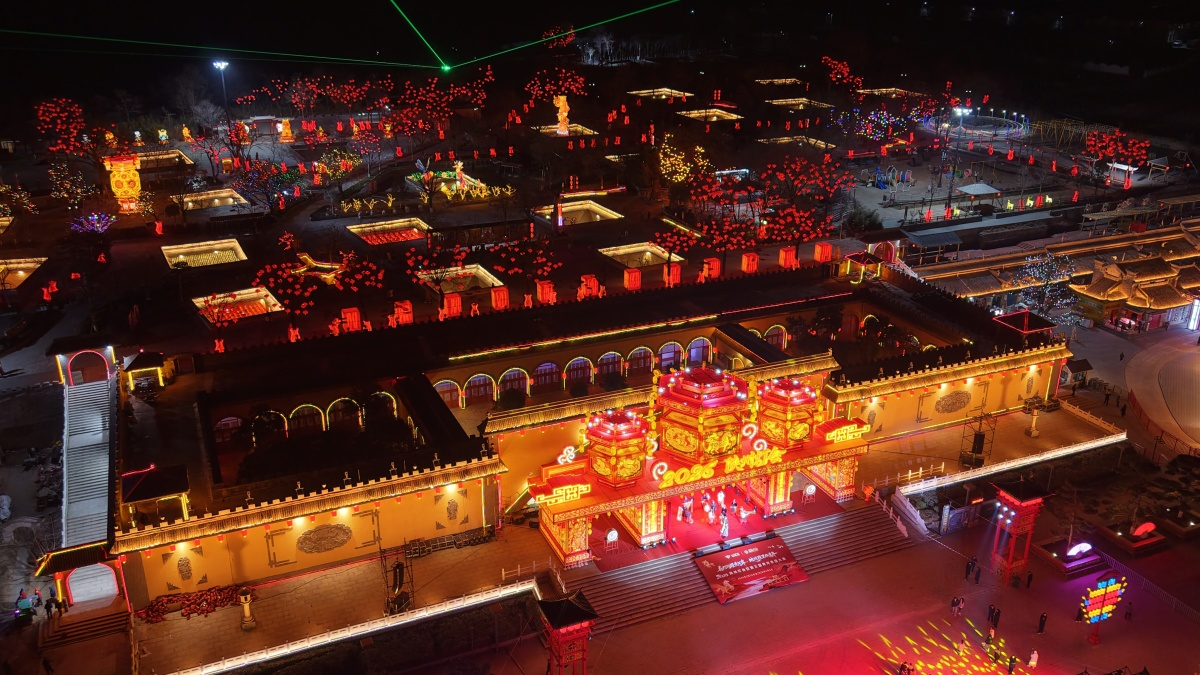 活动现场,随着启动仪式倒计时结束,万千灯火次第绽放,陕州灯会正式亮灯。地坑院上下流光溢彩,红灯笼高挂檐角,主题灯组依次焕彩,黄河文化、非遗元素、新春吉祥纹样在光影中灵动呈现。暖黄与艳红交织,璀璨与古朴相融,千年地下村落化作梦幻光影世界,年味与诗意扑面而来。