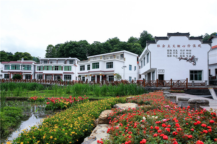 铜仁市万山区青年湖村水墨侗寨文化墙。图片来源:铜仁市文明办