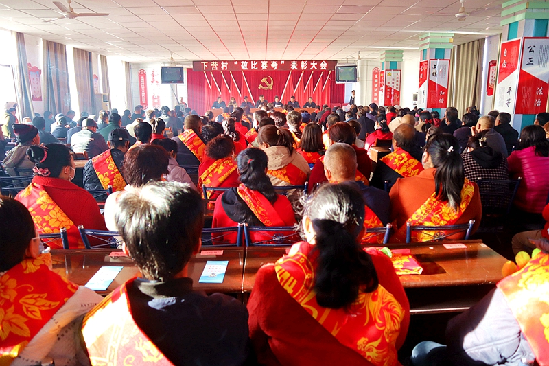 近日,倪家营镇下营村会议室里人头攒动、座无虚席,村上开展了一年一度的“敬比赛夸”表彰大会。