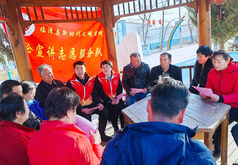 临泽县新时代文明实践理论宣讲志愿服务队走进村社为百姓开展党的二十大精神理论宣讲。甘肃张掖市文明办提供