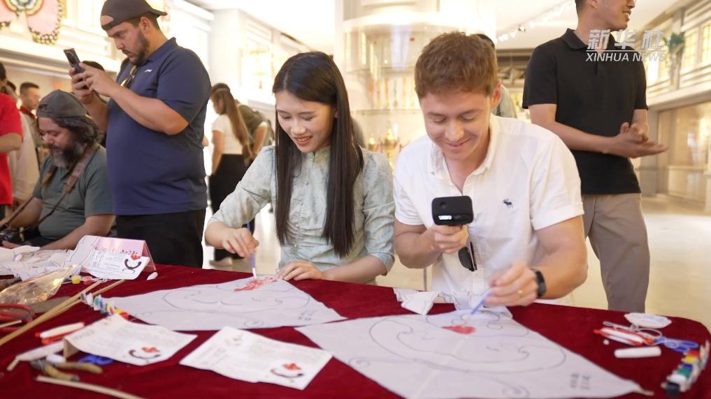 这风轻巧有韵,见证着当地文化非遗的活力传承。外媒参观者们在亲身体验中感受中华漆器、阳江风筝的魅力。