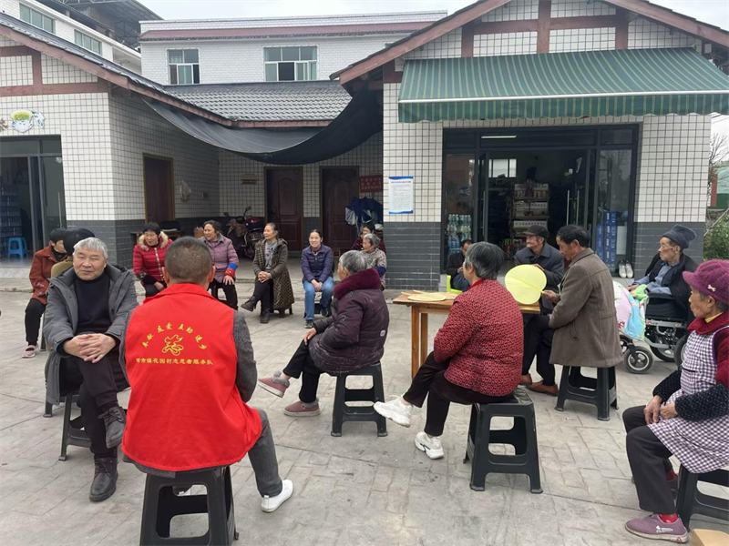 花园村开展“老村长坝坝儿茶”活动。