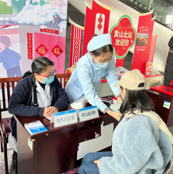 春运期间,黄山北站开展志愿服务活动,为旅客的安全出行保驾护航。