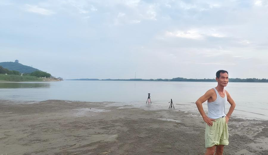 2025年9月11日,爱好延时摄影的马鞍山市居民周泽正在等待日落时分。新华网记者李雪芹 摄