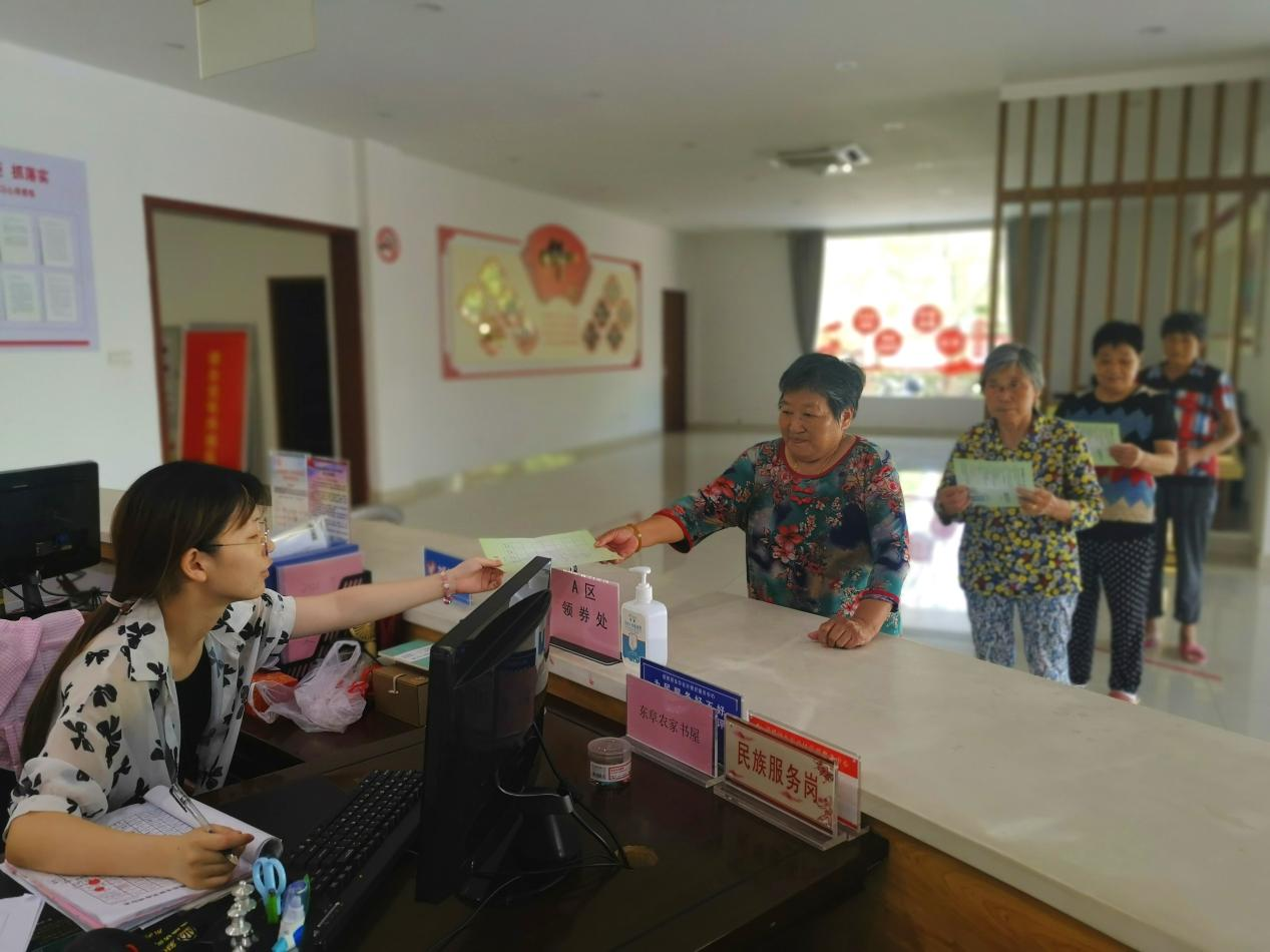 靖江市斜桥镇东阜社区居民到居委会兑换积分